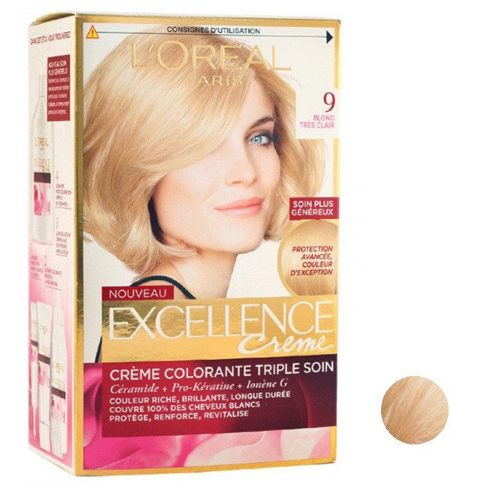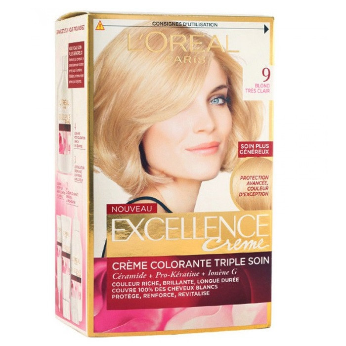 کیت رنگ مو لو-ر-آ-ل مدل Excellence شماره 9 حجم 50 میلی لیتر رنگ بلوند خیلی روشن