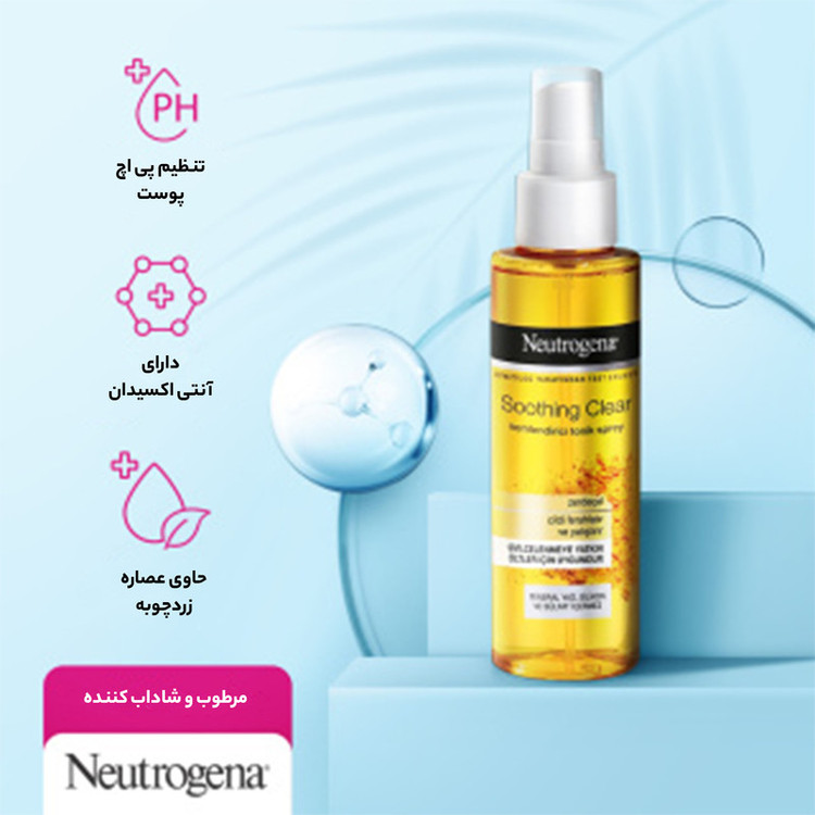 اسپری تونر آبرسان زردچوبه نوتروژینا Neutrogena شاداب کننده و تسکین دهنده برای پوستهای چرب، مختلط رو به چرب و پوستهای حساس مستعد آکنه است. این تونر رطوبت مورد نیاز پوست را تامین کرده، به خوبی جذب پوست میشود و در عین حال رد چربی و چسبندگی روی پوست به جا نمیگذارد. این تونر تمام آلودگی های داخل منافذ پوست را پاک کرده و پوست را به طور کامل پاک سازی میکند. با کمک این اسپری تونر آبرسان میتوان از کم آبی و دهیدراته شدن پوست جلوگیری کرده و در طول روز پوست را سرحال و آرام نگه داشت. تونر و اسپری آبرسان زردچوبه نوتروژینا به خاطر داشتن زردچوبه حاوی خواص ضد باکتری و آنتی اکسیدانی است. خواص آنتی اکسیدانی آن باعث میشود از فعالیت مخرب رادیکالهای آزاد که موجب پیری زودرس پوست .یا مشکلات دیگری مثل سرطان پوست میشوند، جلوگیری کند.