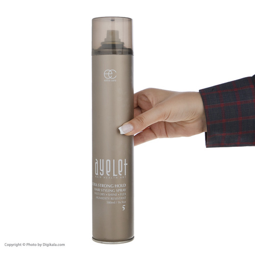 اسپری مو یکی از پرطرفدارترین محصولات آرایشی و بهداشتی در میان بانوان است که در انواع گوناگونی تولید و عرضه میشوند. این گستردگی در نوع و مدل اسپری حالت دهنده مو زنانه موجب شده است که افراد هنگام انتخاب و خرید این محصولات کمی سردرگم و گیج شوند. استایل و ظاهر مو یکی از مهمترین فاکتورهایی است که در انتخاب سبک لباس و تاثیر گذاری بر دیگران به صورت مستقیم دخالت دارد. استفاده از انواع اسپری حالت دهنده مو سادهترین راهکار برای حالت دهی به هر مدل مویی است. محصولی فوق اسپری مو آیلت مدل P1014 حجم 500 میلی لیتر است. این محصول دارای ویتامین B5 بوده و بعد از استفاده موجب درخشان شدن و شفافیت بیشتر موها میشود. اگر موهای شما از ریشه صاف است، استفاده اندک از اسپری مو به افزایش حجم موها کمک می کند. یکی دیگر از مزایای اسپری های موی حالت دهنده این است که به موها ظاهری بدون وز و آراسته می دهد.